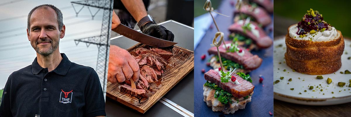 Grillseminar mit Bjoern Terhorst von Time to Meat. Unter dem Motto “Feuer und Kohle“ grillen wir unter Anleitung des Fleischsommeliers ein mehrgängiges Menü. Im Fokus steht dabei die Zubereitung der Speisen am offenen Feuer und im Keramikgrill. Die Rezepte sind aber problemlos auf fast jeder Art von Grill zuzubereiten.